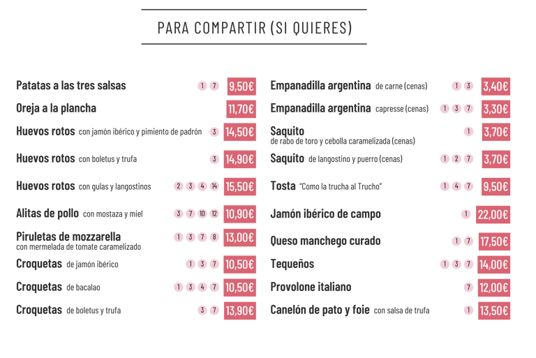 Miércoles / Jueves: 13:00 a 23:30 h.